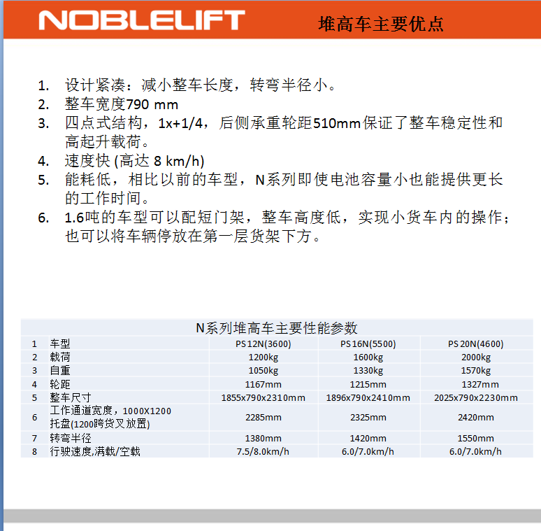 諾力全電動堆高車N系列PS16N